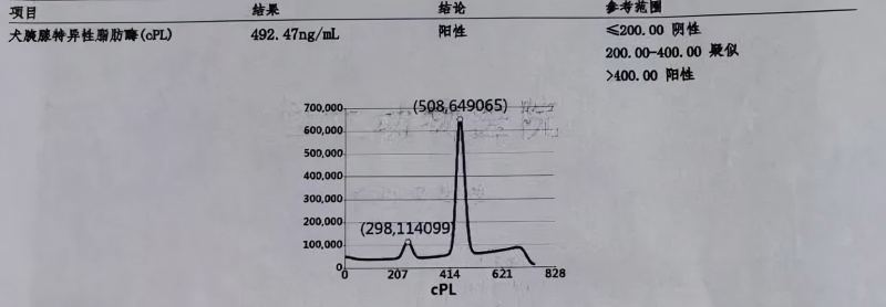 Teşhis sonucu: Köpek pankreasına özgü lipaz (cPL) için pozitif